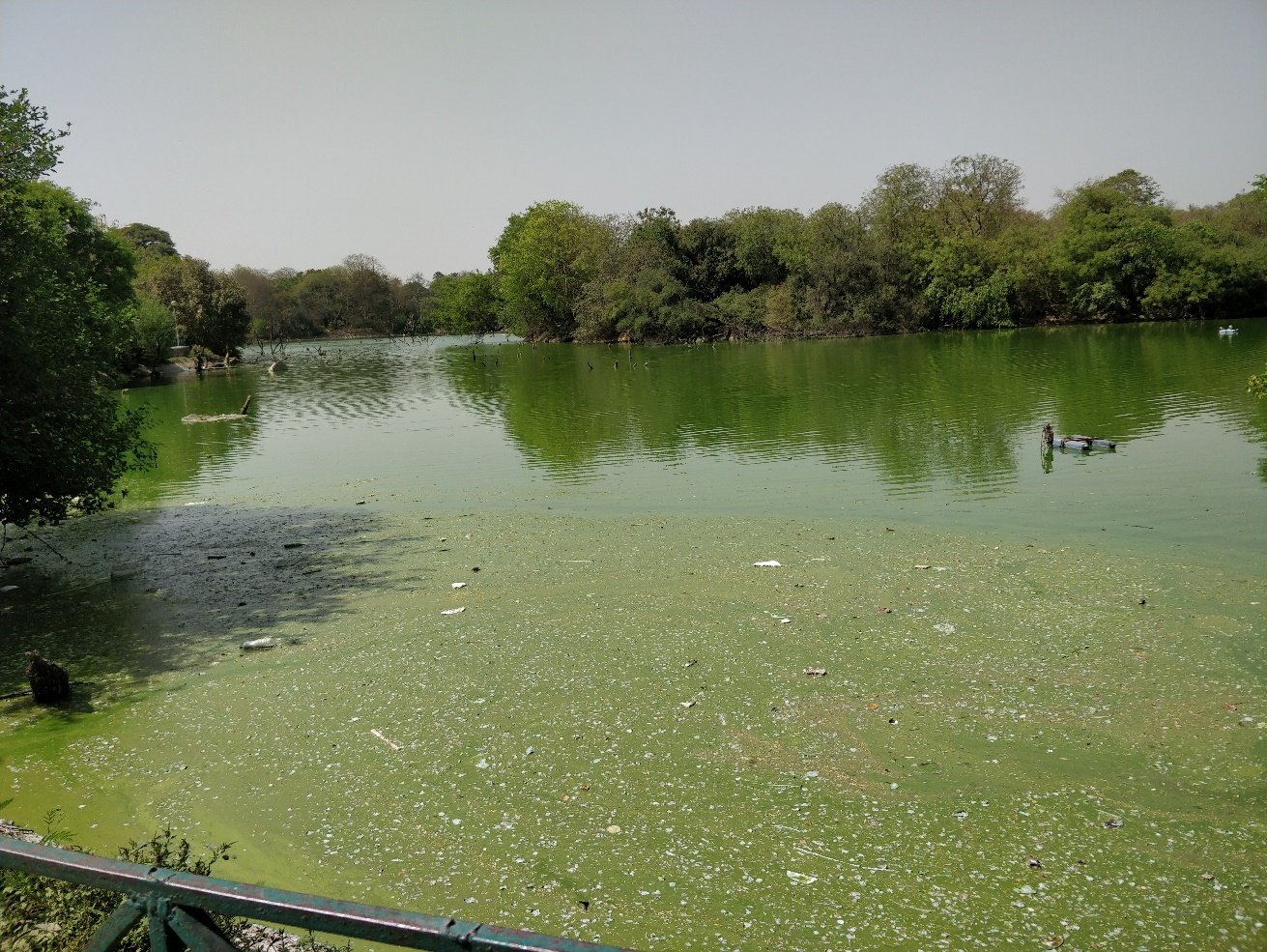 hauz khas algae and pollutants cover large part of the lake